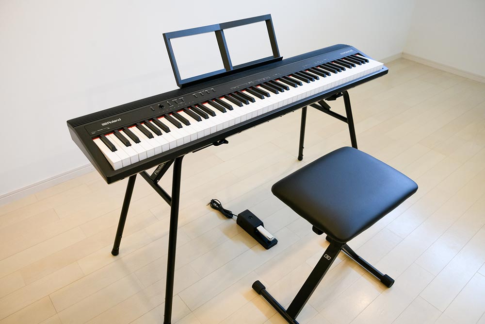 鍵盤の幅と数(88鍵盤)がピアノとまったく同じなので、レッスンのときに同じ感覚で弾けます。ペダルも付いています。