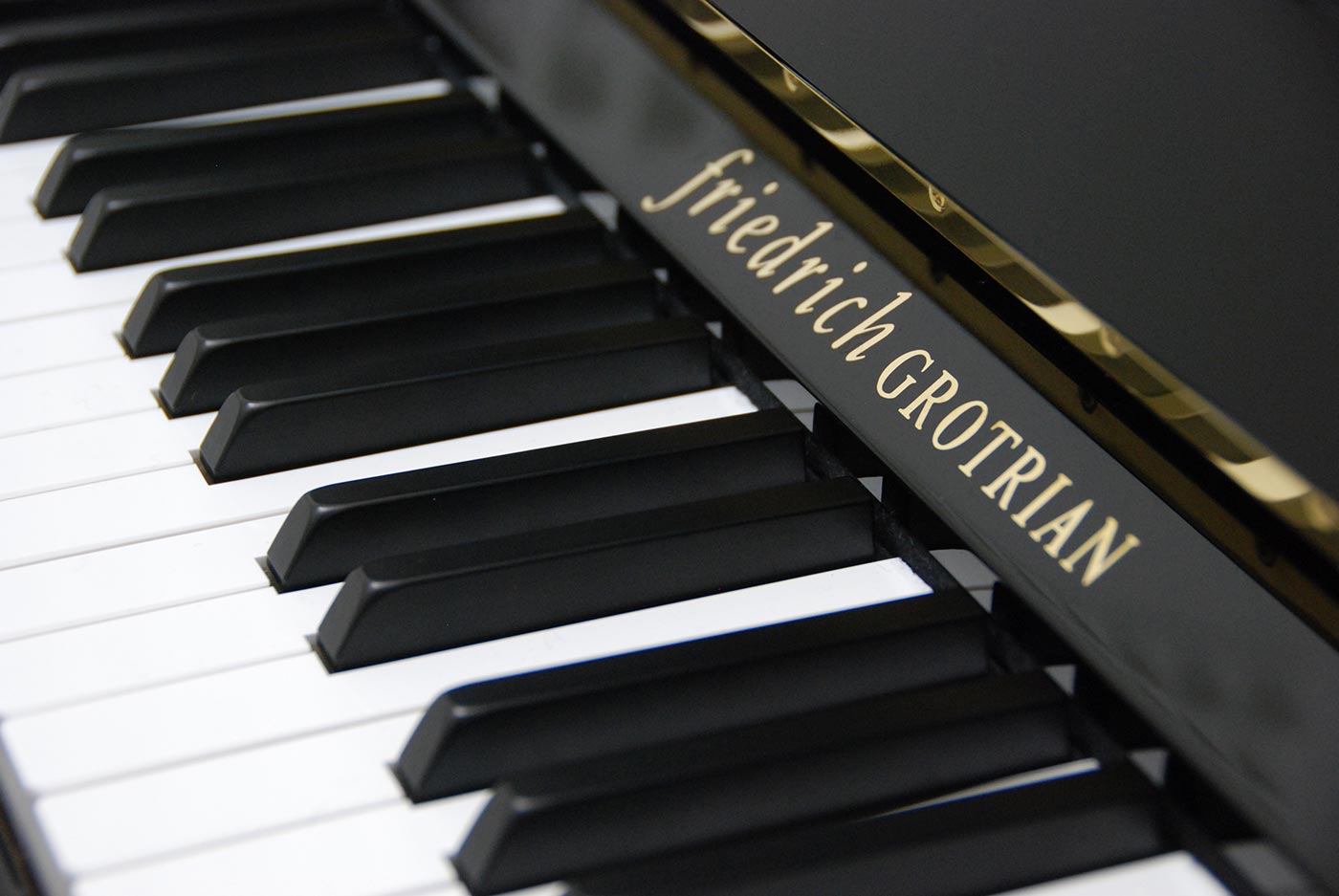 サロンホールには、ドイツの名器フリードリッヒ・グロトリアンも置いていますので、2台でのピアノアンサンブルも楽しんでいただけます。ピアノ愛好家たちの間では、高品質・美しい音色で有名で、クララ・シューマンが愛したと言われるアップライトピアノです。